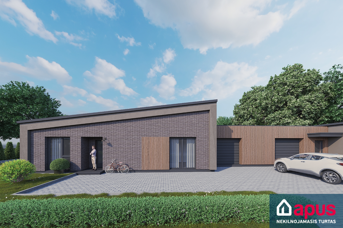 • Dvibučiai namai blokuoti garažais arba sandėliukais – neturi bendros sienos tarp kambarių.