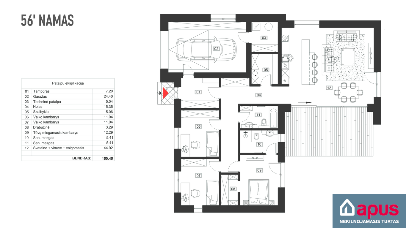 • Namo plotas, kv. m